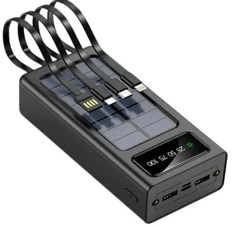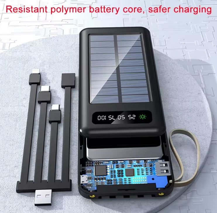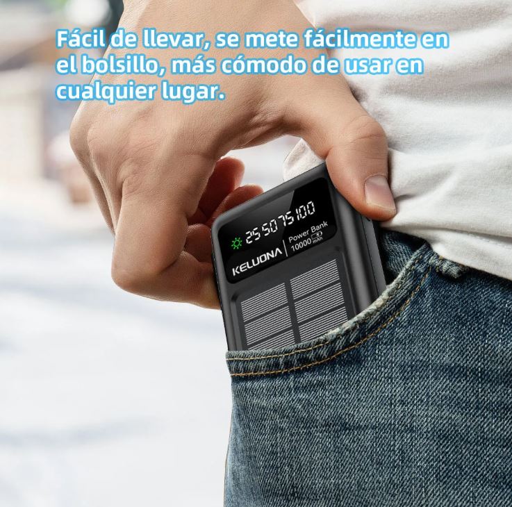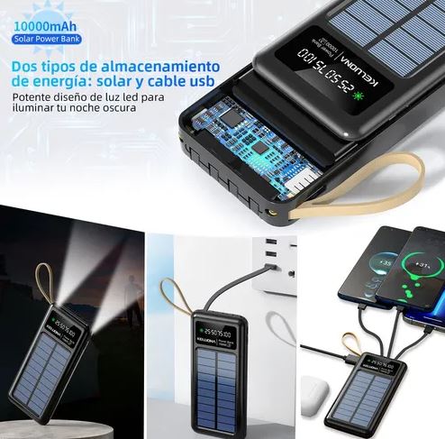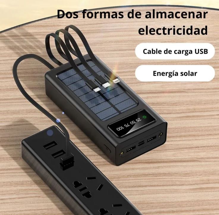 🔹 Versatilidad total: incluye USB, Type-C, Lightning y carga solar. ¡Un solo dispositivo para todo!
