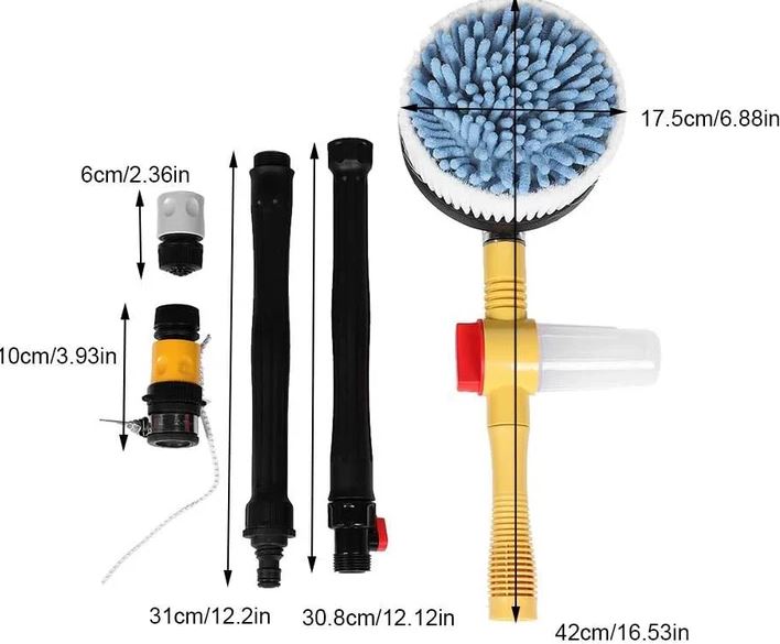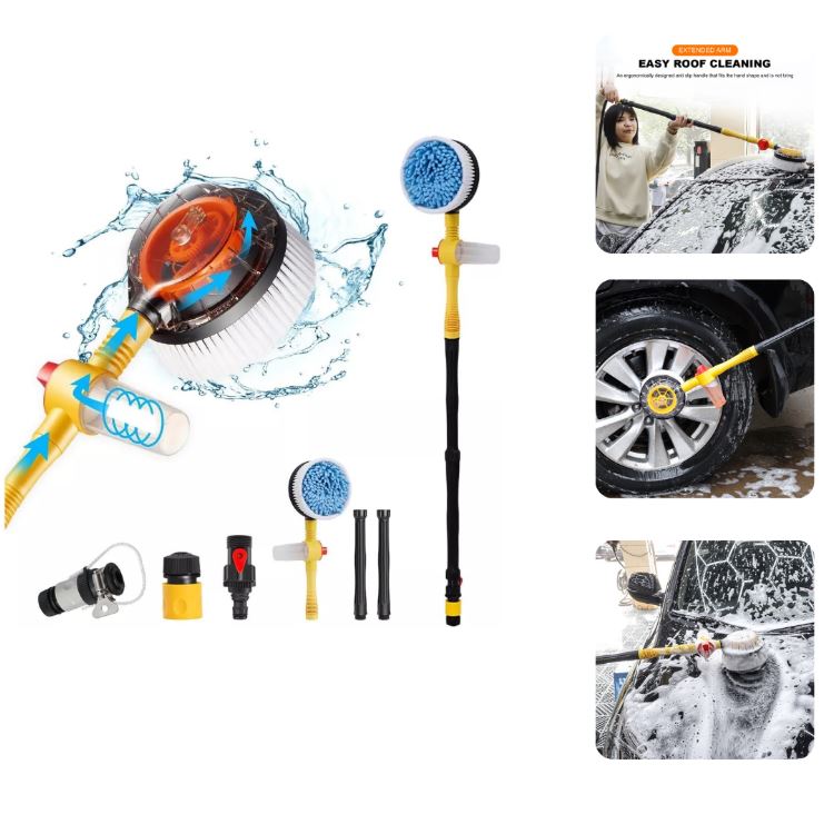 Con el nuevo Cepillo Giratorio 3 en 1, lavar tu coche será tan fácil como abrir el grifo. ¡Ni electricidad necesitas!
