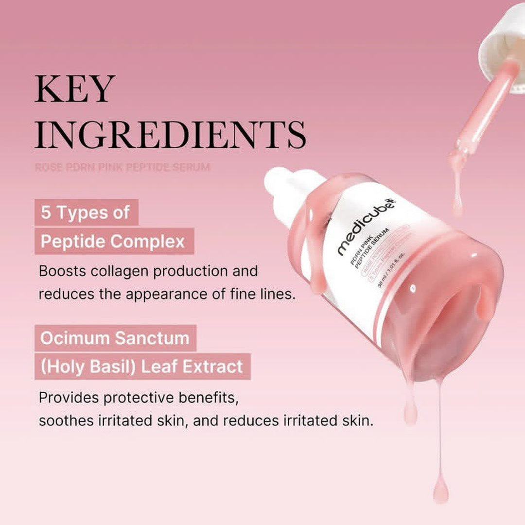 Medicube PDRN PINK combina Rose PDRN + péptidos + niacinamida para: