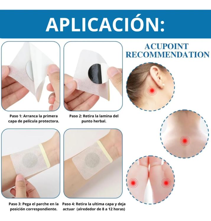 👉 Los parches liberan de manera gradual extractos naturales como lavanda 🌸, angélica 🍃 y polvo de perla 🐚 a través de la piel, ayudando a relajar cuerpo y mente para conciliar el sueño de forma natural.