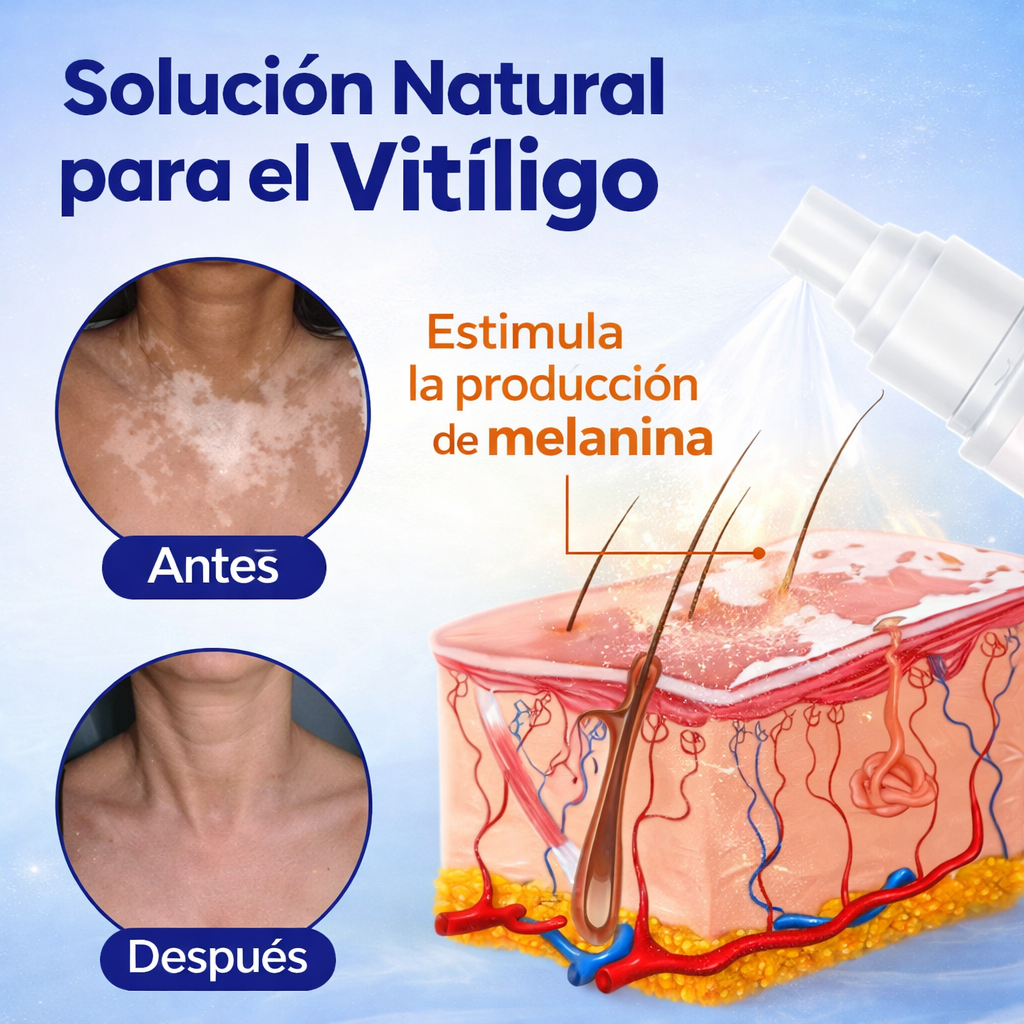 🌿 Fórmula natural con extractos herbales seleccionados, diseñada para apoyar la producción de melanina y mejorar la apariencia del vitíligo.