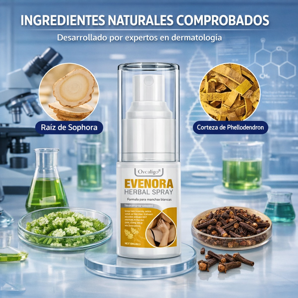 Extraído de una combinación avanzada de ingredientes herbales, Evenora Herbal Spray™ ha sido formulado para apoyar la salud de la piel y ayudar en casos de vitíligo y manchas blancas. 🌿
