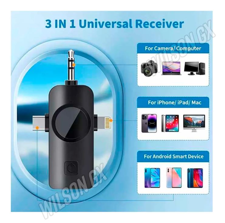 ✅ ¡Sí! El micrófono FOKiRa incluye un receptor 3 en 1 compatible con dispositivos iOS, Android, cámaras DSLR y computadoras portátiles. No necesitas adaptadores adicionales.
