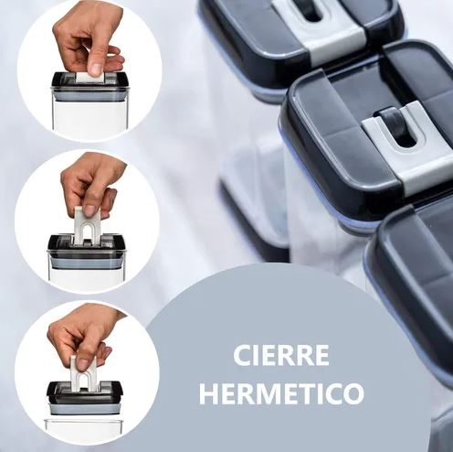 Conserva tus alimentos por más tiempo gracias a este set de frascos con cierre hermético, diseñados para proteger tus ingredientes del aire y la humedad. Perfectos para mantener la despensa organizada y aprovechar cada rincón de tu cocina.