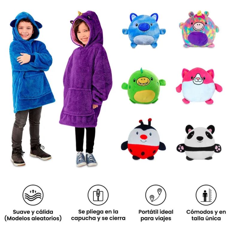 ✔ Súper versátil: Úsalo como abrigo, manta, almohada o peluche 🎒💤