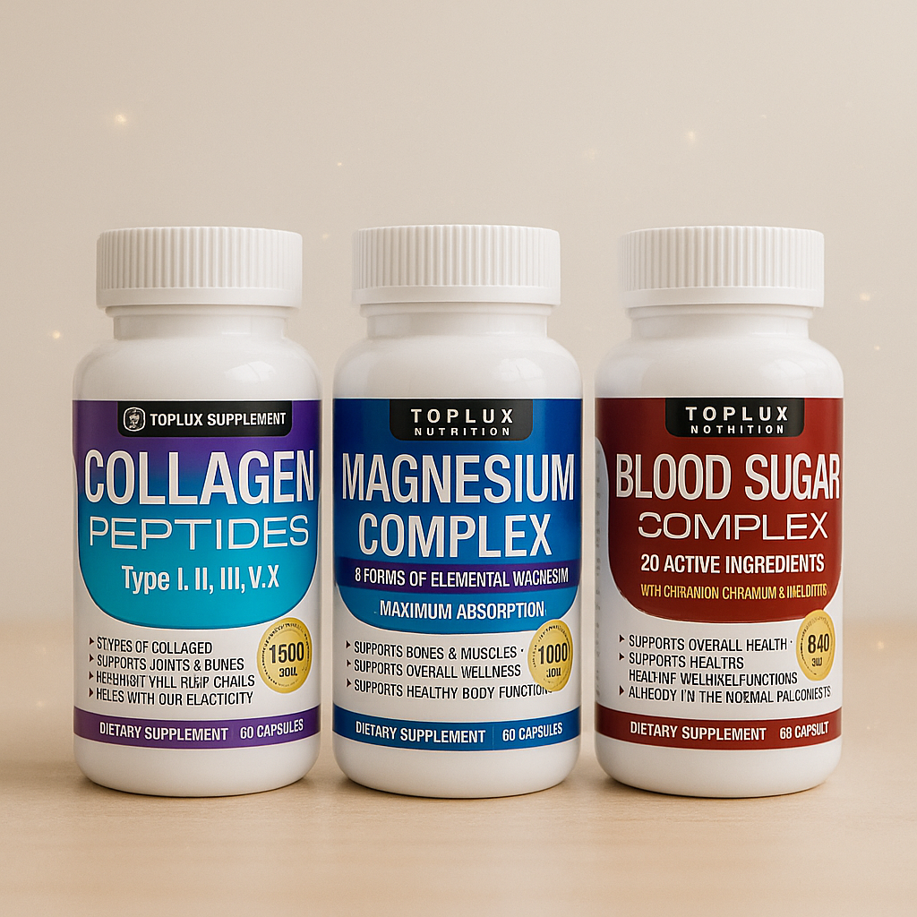 El Colágeno apoya articulaciones, uñas y piel más firme. El Magnesio contribuye al descanso, función muscular y foco. Blood Sugar apoya el manejo saludable de glucosa dentro de una dieta equilibrada. Beneficios concretos: más movilidad, mejor sueño y sensación de balance diario.