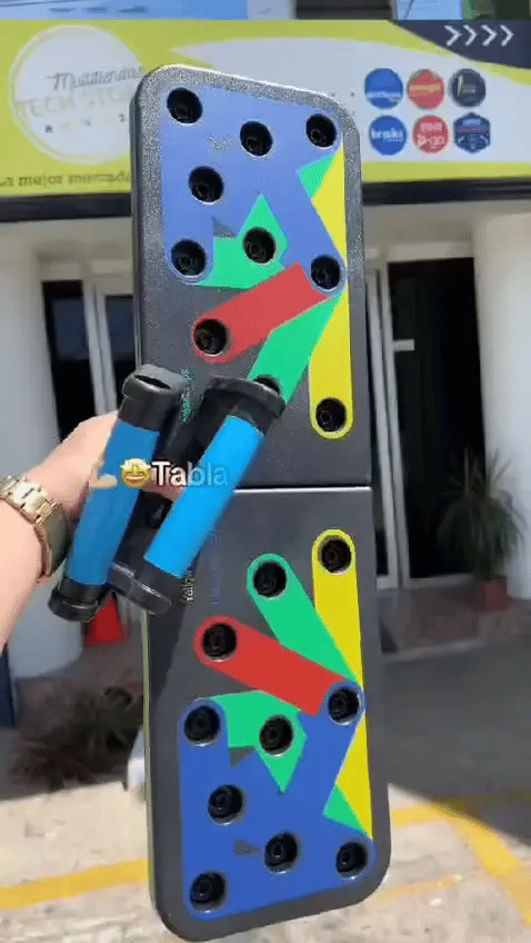 El Tablero de Flexiones Push Up Board es la solución perfecta. Fortalece todos tus músculos con un sistema de colores que guía tu entrenamiento. ¡Ideal para todos los niveles! 🎯